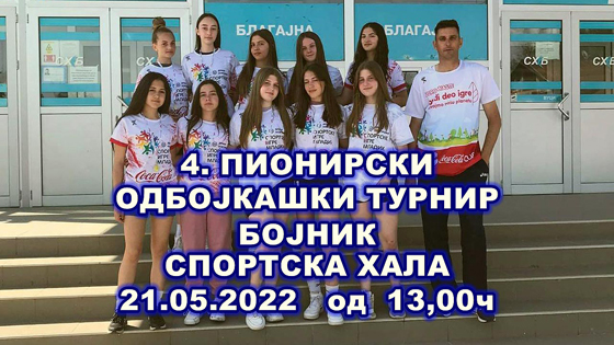 У Суботу, 21.Маја 2022.године, у Спортској хали у Бојнику, са почетком у 13.часова одржаће се 4.Пионирски турнир у женској одбојци.