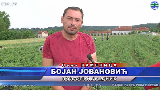 У селу Каменица на газдинству породице Јовановић у току је берба јагода. Са Бојаном Јовановићем, домаћином, разговарали смо о њиховим искуствима у гајењу јагоде на отвореном и у пластенику али и о тренутној берби.