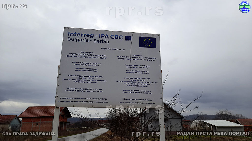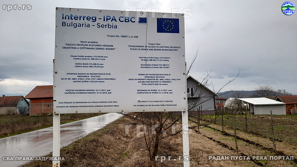 Први пројекат на коме се сарађивало је била изградња асфалтног пута од Зелетова до цркве Св.Архангела Гаврила у Придворици. Овај пут представља заобилазницу коју Бојник до сада није имао. Веома је битна и представља алтернативу за одлазак из Бојника у Правцу Ниша или Лесковца без проласка кроз центар Бојника. Вредност овог пројекта је била  374000 евра а због тога што је пројекат завршен у року добијени су бонус поени који су омогућили да се други пројекат, уређење платоа, лакше добије.