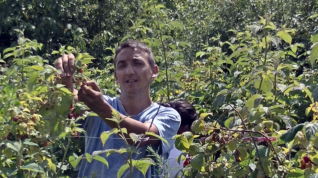 Наш домаћин, Бојан Стојановић, има 12 ари под малином и исту површину под купином, такође гаји и јагоду. Крај малињака је засад лешника, а ту негде су и шљиве али и вишње и виноград. У припреми је расад за још једну парцелу под јагодом. На овој ће парцели јагода бити сађена на фолију. Део ће посадити расадом који, сами припремају, а за оно што недостаје потрудиће се да добију субвенције и посаде сертификован садни материјал, јагоду Зенгу. Овакви засади, у овом и суседним селима, ничу захваљујући томе што постоји могућност заливања системом кап по кап. Такав систем користи и наш домаћин за заливање малине али и купине, а уградиће га и у нови засад јагоде.