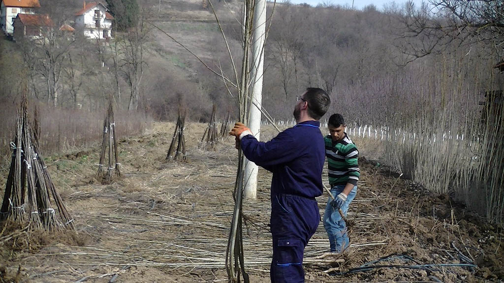 Rasadnik je specijalizovan za uzgoj sadnica Oblačinske višnje i Kanadske topole i postoji već pet godina. Upravo su vadili jednogodišnje sadnice koristeći specijalan plug. Sadnice se pakuju i zarove u pesak i tako ostaju do prenošenja na njivu gde će biti posađene, po pripremi zemljišta. Ovo je, kako smo saznali, najteži deo posla u rasadniku.