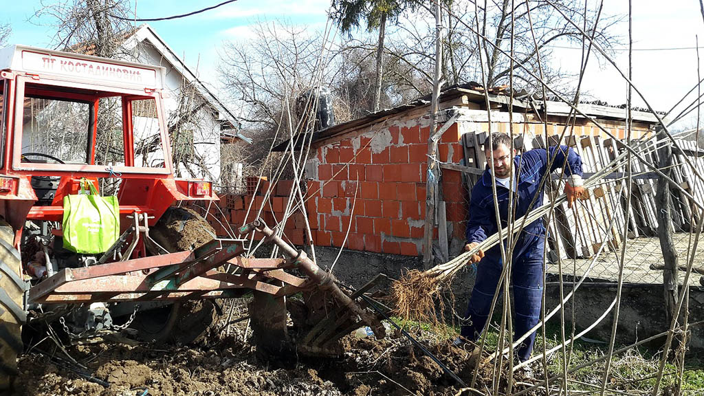 Napravili su kraću pauzu da se odmore od teškog posla pa smo to iskoristili za razgovor sa Milošem Kostadinovićem, učiteljem po profesiji, koji sa porodicom gazduje poljoprivrednim gazdinstvom Kostadinović. Jedan je od većeg broja mladih koji su ostali da žive i rade na selu. Pored ovog rasadnika, koliko znamo, jedinog u širem krugu, ima i skoro 5 hektara pod Oblačinskom višnjom, tu su i brojne parcele, male po površini ili loše po kvalitetu zemljišta, 6-7 klasa, na kojima gaji Kanadsku topolu. Od ovog mladog učitelja mogu da uče mnogi, a ne samo đaci u školi.