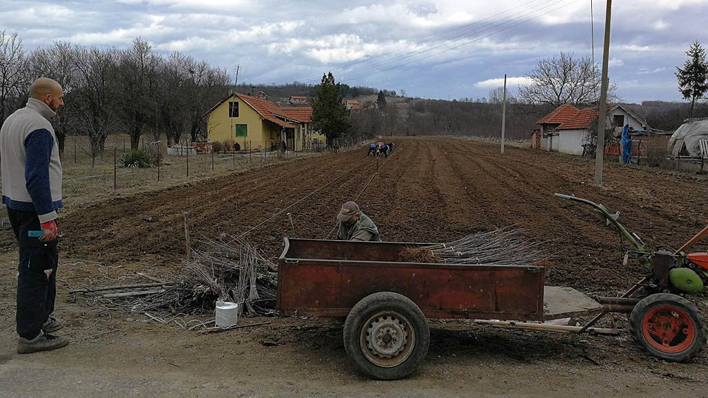 Napravili su kraću pauzu da se odmore od teškog posla pa smo to iskoristili za razgovor sa Milošem Kostadinovićem, učiteljem po profesiji, koji sa porodicom gazduje poljoprivrednim gazdinstvom Kostadinović. Jedan je od većeg broja mladih koji su ostali da žive i rade na selu. Pored ovog rasadnika, koliko znamo, jedinog u širem krugu, ima i skoro 5 hektara pod Oblačinskom višnjom, tu su i brojne parcele, male po površini ili loše po kvalitetu zemljišta, 6-7 klasa, na kojima gaji Kanadsku topolu. Od ovog mladog učitelja mogu da uče mnogi, a ne samo đaci u školi.
