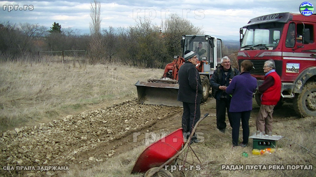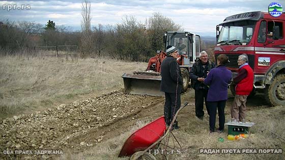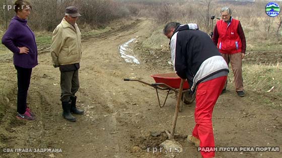 Од јутра до мрака камиони су дотеривали шодер, комшија Звонко багером поправљао пут, а мештани припомагали лопатама и мотикама, колико су могли и где је требало. У каквом је стању био пут говори чињеница да се камион, који је дотерао шодер, заглавио покушавајући да се врати од центра села и оде по још једу туру.