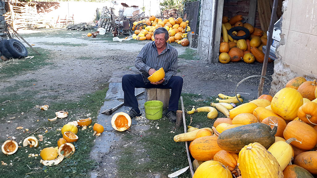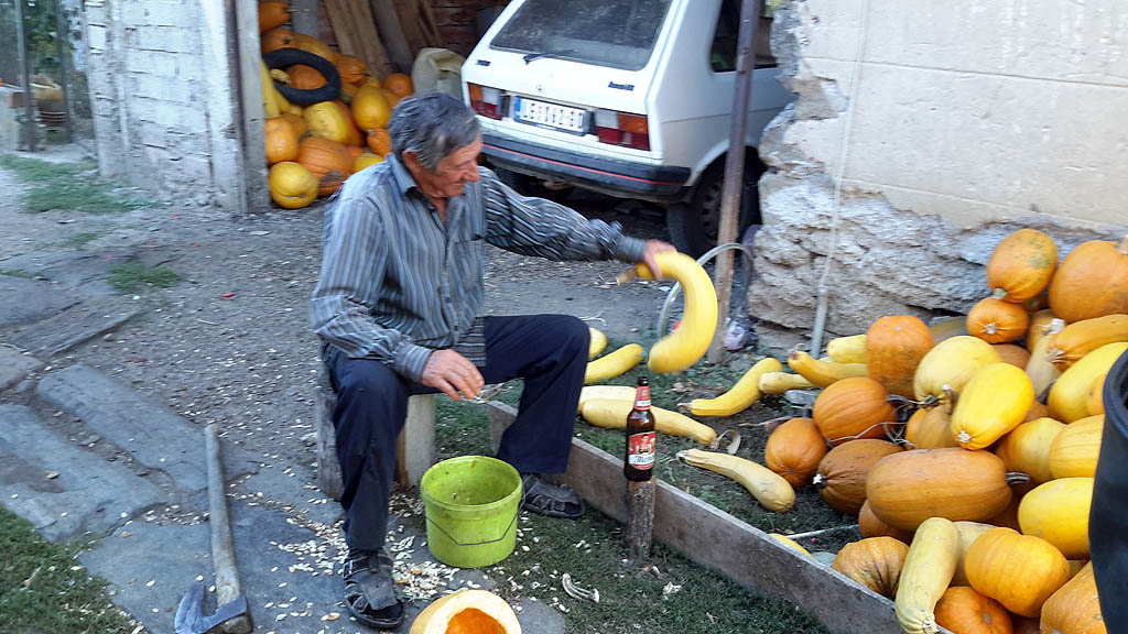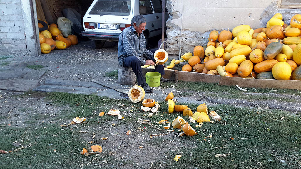Krajem leta i početkom jeseni sa njiva se prikupljaju i poslednji plodovi. Žito je požnjeveno, kukuruz obran, krompir i luk izvađeni, obrano je voće i bašte su već prazne, a tegle i zamrzivači puni. Vredni poljoprivrednici sada sumiraju rezultate jednogodišnjeg rada, gde je rod dobar, gde je podbacio, a gde su postignuti rekordni prinosi. Ove je godine većina zadovoljna prinosom krompira i kukuruza. Kroz kukuruz se obično posadi i tikva, koja se, ove godine, svuda dobro rodila. Izgleda da se ipak najviše rodila u selu Gornji Brestovac, na njivi Bite Poštara. Pozvao nas je da se pohvali prinosom jer, kako kaže, prošle godine se rodilo dobro, ubrao je dve prikolice, ali sada još više, pune tri prikolice i to je, ujedno, rekordan prinos tikve i u njegovom životu i u okolini, koliko zna. Sada tikvama hrani svinje, toveći za klanje za svoje potrebe i uzgred priprema i semenke za grickanje uz pivo ili malo grejane preko zime.
