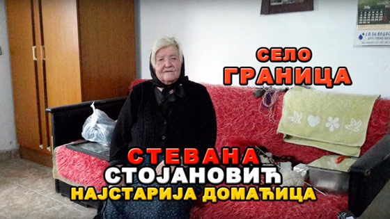 Boraveći u selu Granica poželeli smo da upoznamo najstarijeg žitelja ovog mesta. Naš vodič, Čeda Grof nas je poveo do svoje komšinice i rođake Stevane Stojanović. Pozdravili smo se sa domaćicom i započeli, neobavezan, razgovor svo vreme očekujući da se pojavi još neko. Naša domaćica, vedra i vitalna, nutkala nas je kafom i rakijom i pitom kupusarom od sukanih kora, koju je, tog jutra, sama, napravila. Trebalo nam je vremena da shvatimo da je ona najstarija u selu Granica. Stojanović Stevana ima 92 godine ali joj niko ne bi dao više od šezdesetak. Rođena je u selu Gornji Drenovac i već 72 godine živi u Granici.