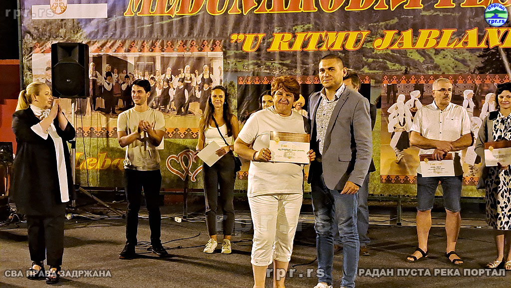 Учесницима првог дана фестивала плакете, захвалнице и пригодне поклоне-успомене на боравак у Лебану уручио је Томислав Јовић председник КУД-а ,,Јабланичко коло“.