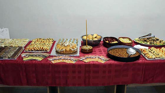 Bili su postavljeni specijaliteti posne srpske slavske trpeze, a mlađi su se latili mikrofona i uz karaoke razveselili prisutne u nedeljno prepeodne.