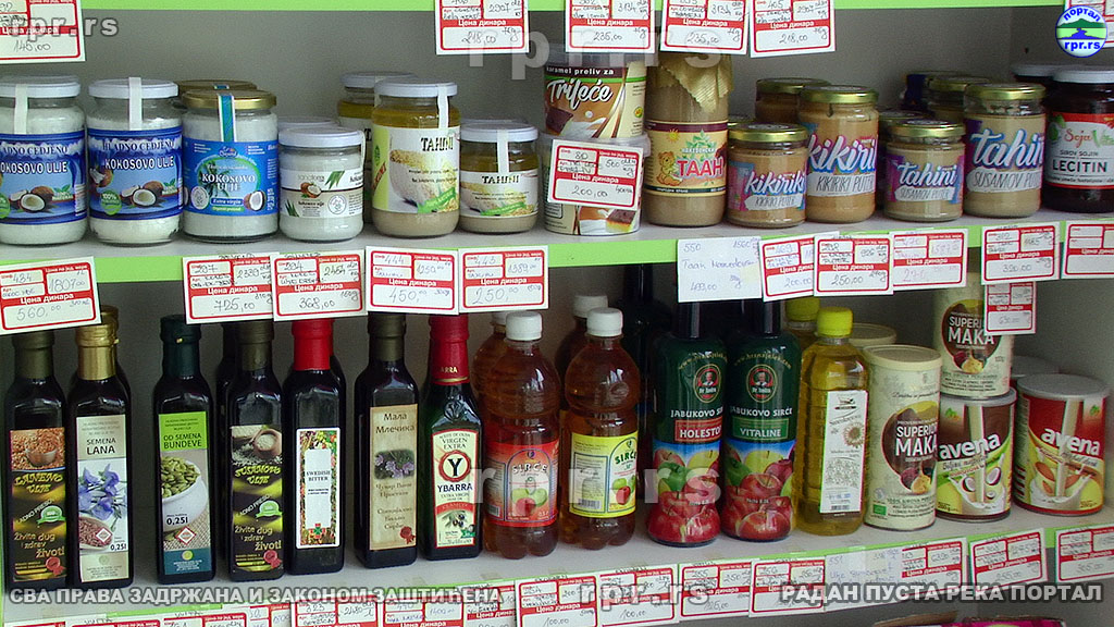 Dragana Đorđević, diplomirani farmaceut, sa 20 godina iskustva u struci,ovde suvlasnica i stručni saradnik, nam je predstavila asortiman proizvoda prodavnice. Ovde možete kupiti sve praškaste proizvode, orašasto veće i slično što vam može zatrebati ako odlučite da svoje ukućane obradujete kolačima. Tu možete kupiti i gotove kolače i kekse ali će ovde moći za sebe da nađu ponešto i oni koji imaju višak šećera ili su alergični na gluten. Veliki je izbor čajeva ali i brašna od različitih žitarica, za one koji vole da umese svoj hleb. Tu su naravno i začini a mi Vam proporučejemo „vegetu“ bez soli i aditiva. Ima i pravih prirodnih sokova, kako matičnih, tako i sirupa. Tu su naravno med i drugi proizvodi pčela. A kakva bi to zdrava hrana bila bez zdravih grickalica. Izbor grickalica je veliki ali ne računajteda će uvek biti onog što ste prošli put kupili. Ovde su deca našla svoju zdravu zamenu za hranu iz kesice, a što kupi jedno dete hoće i sva ostala pa brzo nestane.