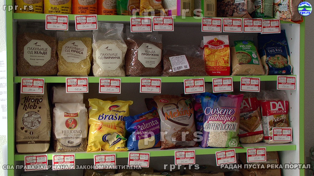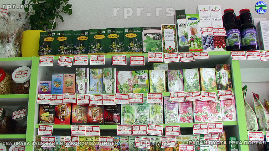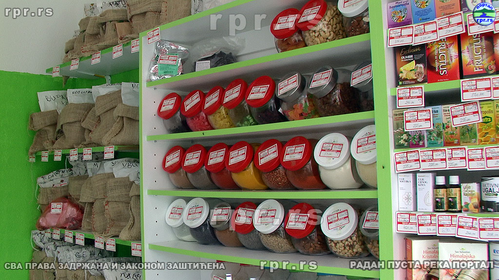 Драгана Ђорђевић, дипломирани фармацеут, са 20 година искуства у струци,овде сувласница и стручни сарадник, нам је представила асортиман производа продавнице. Овде можете купити све прашкасте производе, орашасто веће и слично што вам може затребати ако одлучите да своје укућане обрадујете колачима. Ту можете купити и готове колаче и кексе али ће овде моћи за себе да нађу понешто и они који имају вишак шећера или су алергични на глутен. Велики је избор чајева али и брашна од различитих житарица, за оне који воле да умесе свој хлеб. Ту су наравно и зачини а ми Вам пропоручејемо „вегету“ без соли и адитива. Има и правих природних сокова, како матичних, тако и сирупа. Ту су наравно мед и други производи пчела. А каква би то здрава храна била без здравих грицкалица. Избор грицкалица је велики али не рачунајтеда ће увек бити оног што сте прошли пут купили. Овде су деца нашла своју здраву замену за храну из кесице, а што купи једно дете хоће и сва остала па брзо нестане.